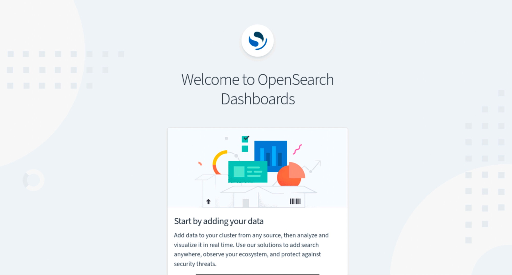 After a successful login, you will be redirected to the OpenSearch Dashboards home screen.